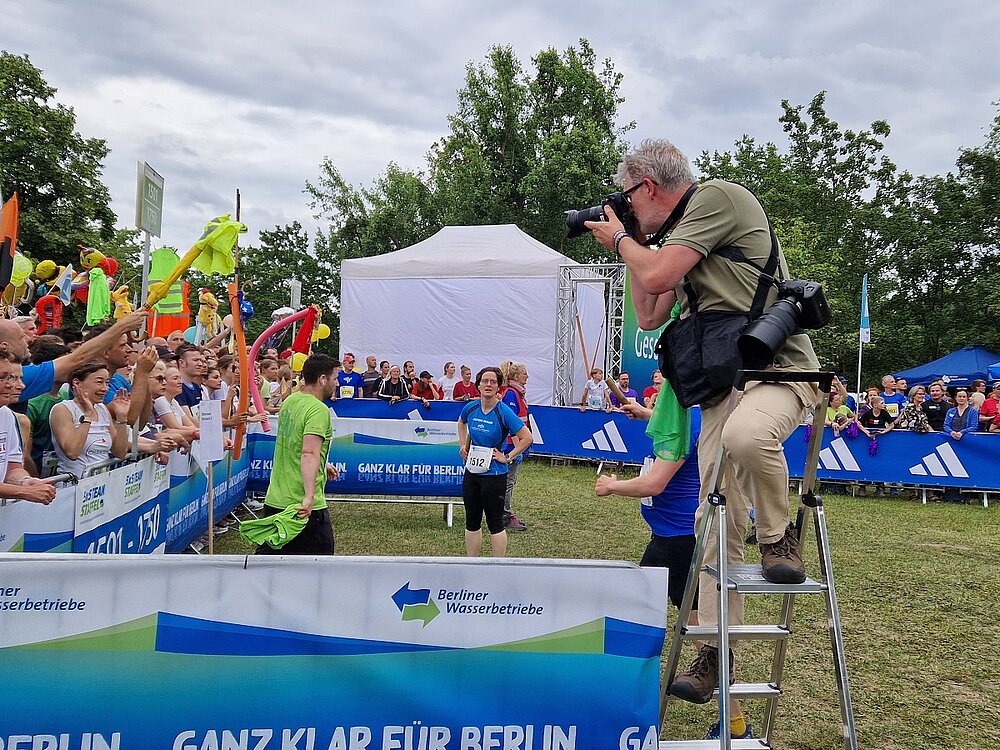 An einem typischen Veranstaltungstag entstehen etwa 2.000 bis 2.500 Fotos. Daraus wählt er rund 10 Prozent aus – etwa 200 Bilder, die das Event vollständig dokumentieren: vom Start über Wechselzone bis hin zum Zieleinlauf und den besonderen Momenten am Rande. Diese Fotos werden sorgfältig bearbeitet und anschließend an den SCC EVENTS geliefert. SCC EVENTS stellt sie wiederum allen Interessierten auf der Website der Berliner Wasserbetriebe 5 x 5 km TEAM-Staffel zur Verfügung. Have a look here!